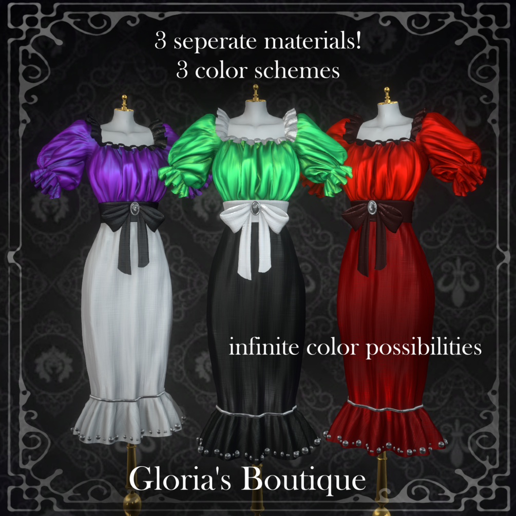 Embrace timeless elegance with the MoonLit Amethyst. This enchanting dress features a regal purple satin top with soft puffed sleeves, a delicate ruffled neckline, and a luxurious black bow with a jewel centerpiece. The flowing pearl-trimmed white skirt exudes sophistication, making it the perfect choice for magical nights under the Moonlight.