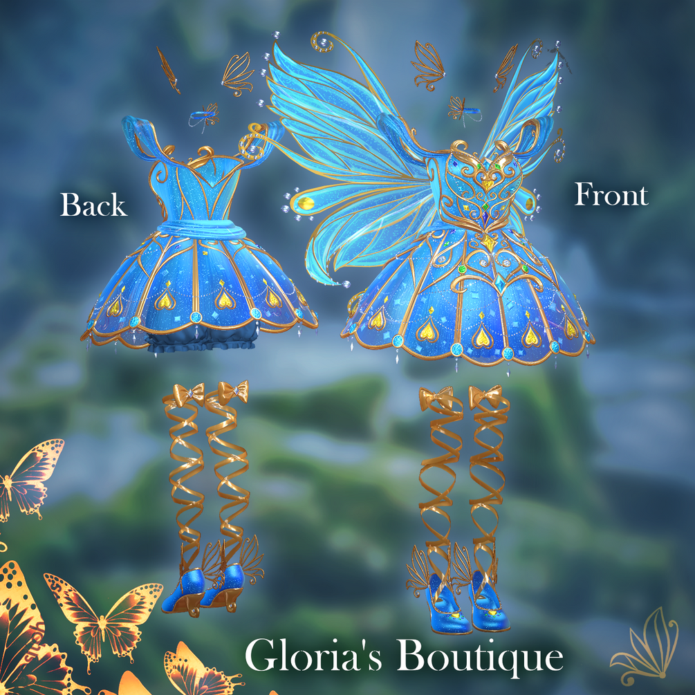Step into an ethereal dream with Fairy Spirit, a luminous fairy dress designed to dazzle under moonlight and sparkle like morning dew. This magical ensemble captures the essence of fantasy and light, blending shimmering materials with ornate golden detailing to create a look that feels truly enchanted.